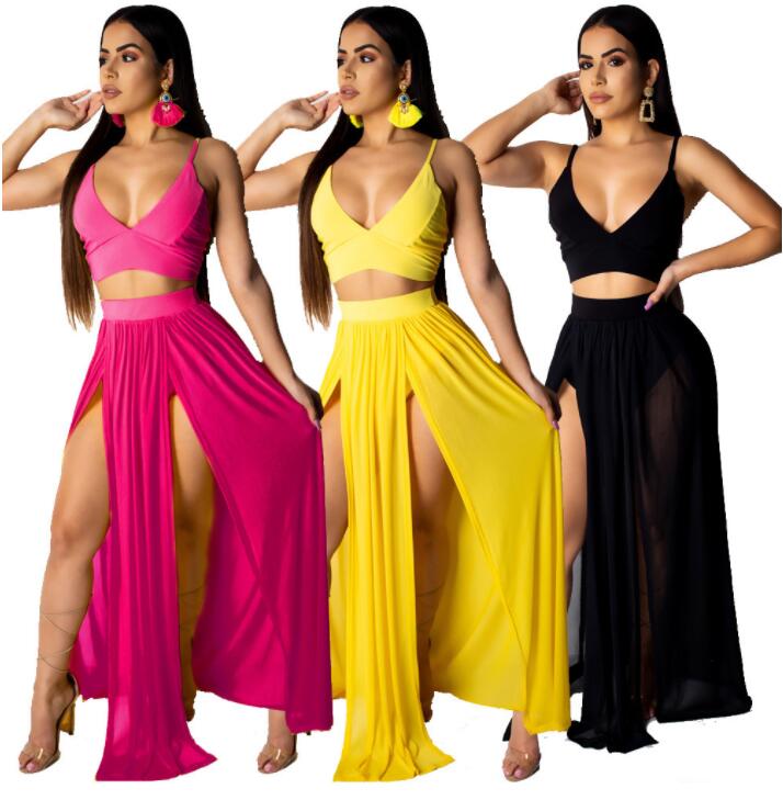 レディースダンス衣装 欧米風キャミソール+スリットスカート上下セットアップ ベリーダンス衣装 無地ロング丈ドレス セクシー パーティードレス 大きい裾ドレス おしゃれ 学園祭 文化祭 団服 イベント演出服