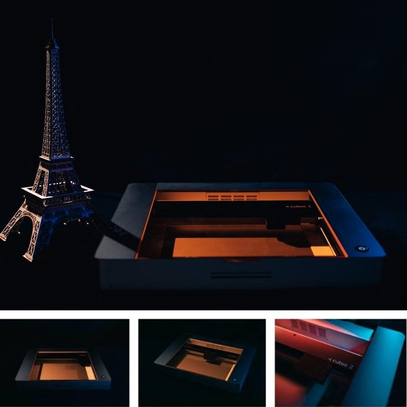 【Cubiio2】自動で焦点調整ができる高性能レーザー加工機・金属に彫刻できるのにわずか6kg 世界中のレーザー加工機・レーザー彫刻機 愛好家を満足させた「Cubiio」が、さらに高性能を目指し、 繊細な技術と大きなサイズへの対応が可能の上、薄型化した「Cubiio 2」を開発しました。