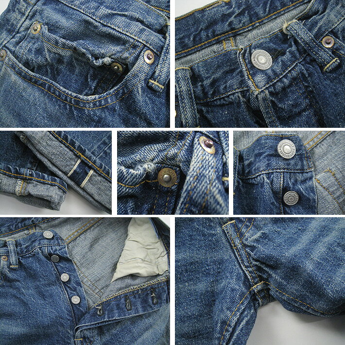 仕様 ・ボタンフライ ・紙パッチ ・バータック補強 ・セルビッジデニム ご確認ください ※ヴィンテージの風合いを再現する為に生地ムラがある場合がございます。