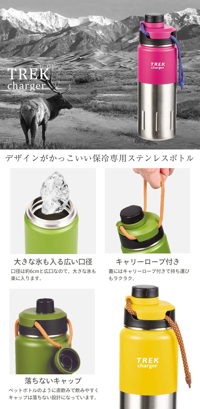 ▼ サイズ外径8×高さ25.5cm▼ 重量約365g▼ 容量700ml▼ 保冷効力10度以下(6時間)▼ 開け口タイプスクリュー▼ 素材・材質[内びん]ステンレス鋼[胴部]ステンレス鋼(紛体塗装)[ふた栓・キャップ]ポリプロピレン(100度 -20度)[パッキン]シリコーンゴム(180度 -20度)[キャリーロープ]ポリエステル▼ 原産国中国▼ 備考つけ置き洗いや食器洗い乾燥機は使用しないでください。