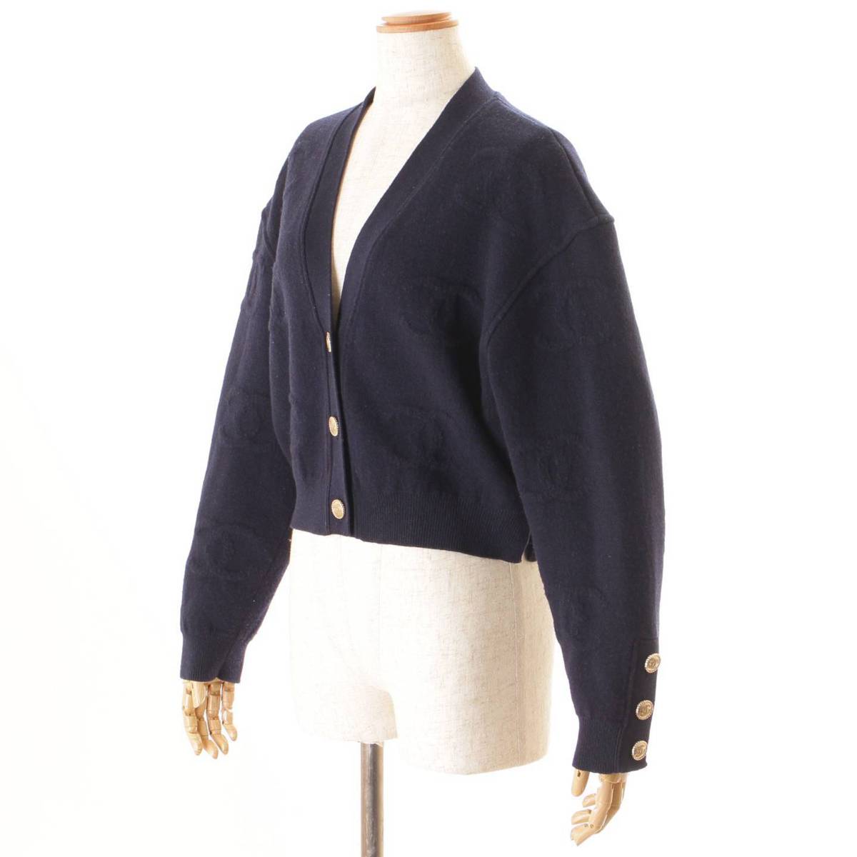 【シャネル】Chanel 21SS カシミヤ ココマーク ニット カーディガン P70524 ネイビー 38 【中古】【鑑定済・正規品保証】154836