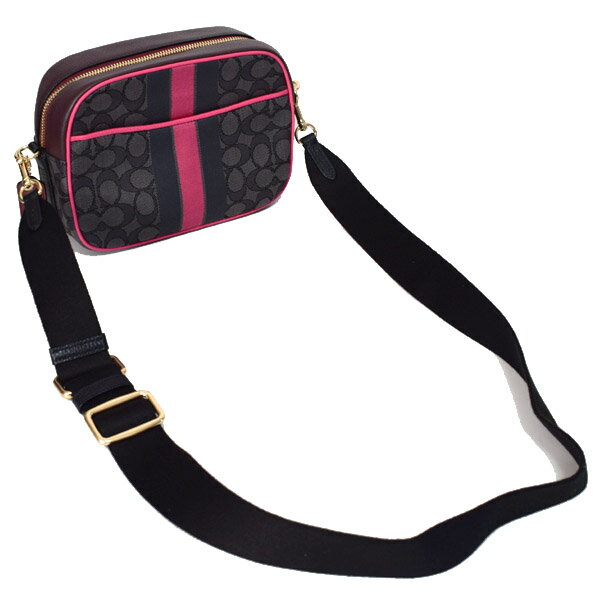 コーチ バッグ COACH ジャガード ぺブルレザー シグネチャー デンプシー ストライプ パッチ カメラバッグ クロスボディ 斜め掛け 2way クラッチ ショルダーバッグ ブラック×ワインマルチ coach1912【新品 送料無料 包装 即日発送】