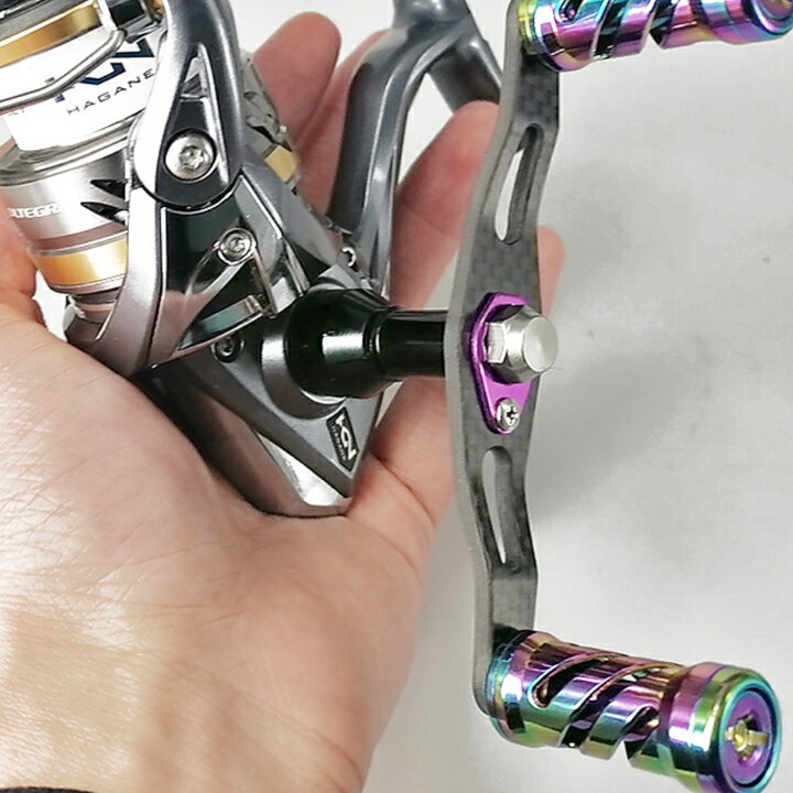 商品詳細 品名 カスタムリールハンドル SPEC ●品番 :S-2 ●軸間:95mm ●最大耐荷重(kg):25 ●自重(g):約A53/B58(カーボン部分10g) ●ノブは多彩系のアルミニウム2ピース。