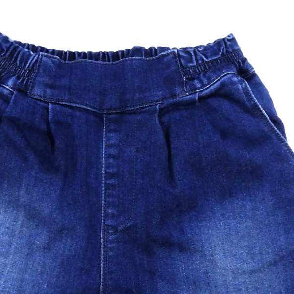 ハイストレッチデニムを使った、タック付きのキュロットパンツです。