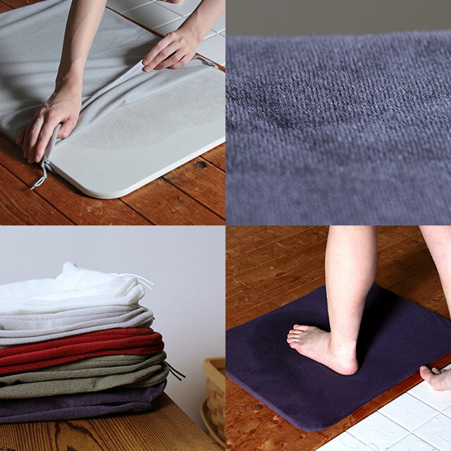 驚異的な透水性と速乾性を実現する新素材を 使用したニット素材で、カバーの繊維が水を 通し、今まで通り下の珪藻土が水分を吸収 します。
