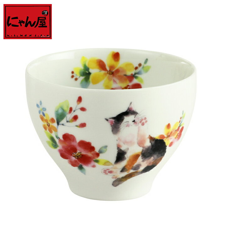 にゃん屋 花猫 煎茶 レッド | おしゃれ 日本製夫婦 カップ 誕生日 家族 美濃焼 陶器 お揃い 還暦祝い かわいい 祖父 祖母 誕生日プレゼント 湯のみ 湯呑み 湯呑 湯飲み セラミック藍