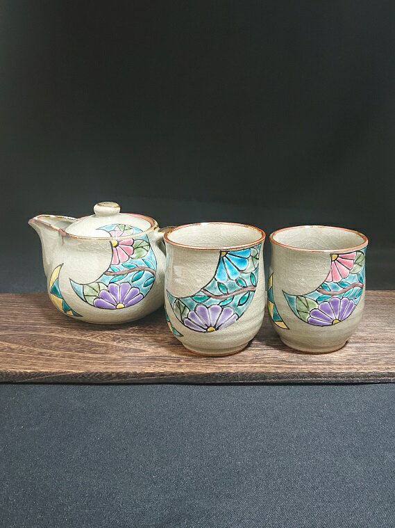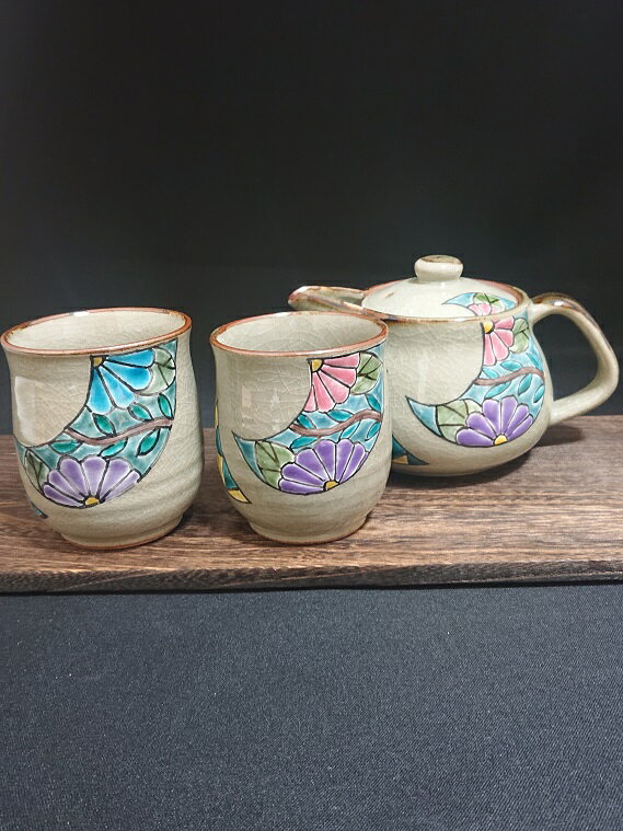 【九谷焼】くつろぎ揃 (日本茶 急須 ポット 茶器 陶器 ティーポット 湯呑 組湯呑) 花文