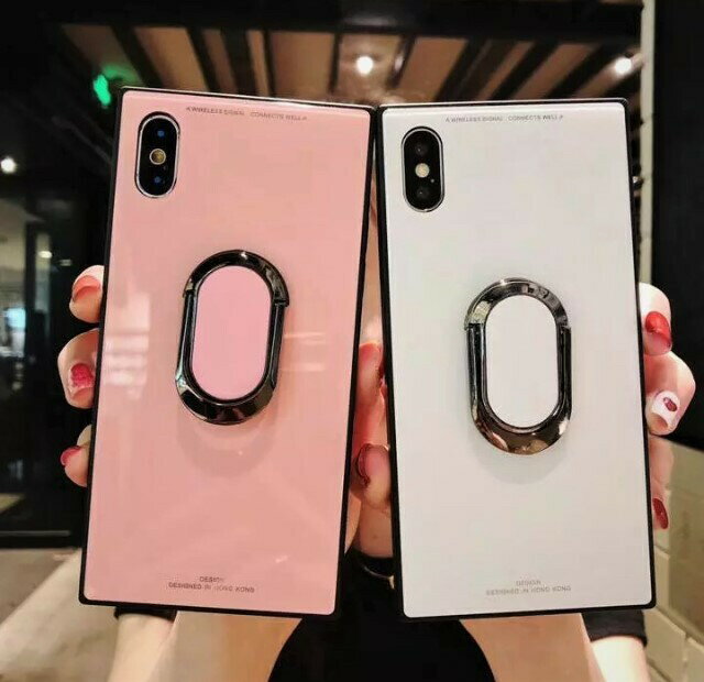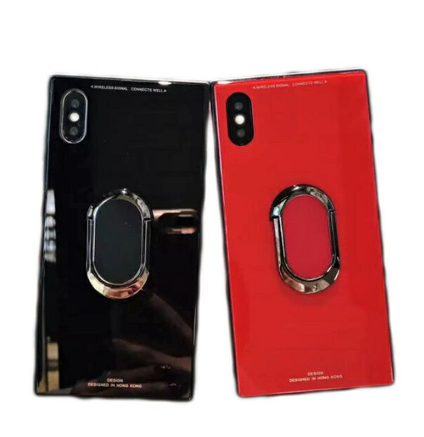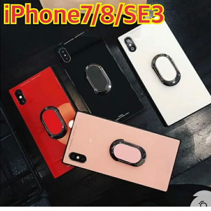 【ポイント10倍 マラソン限定】スマホリング付き iPhoneケース ブラック/ホワイト/ピンク/レッド スクエア型