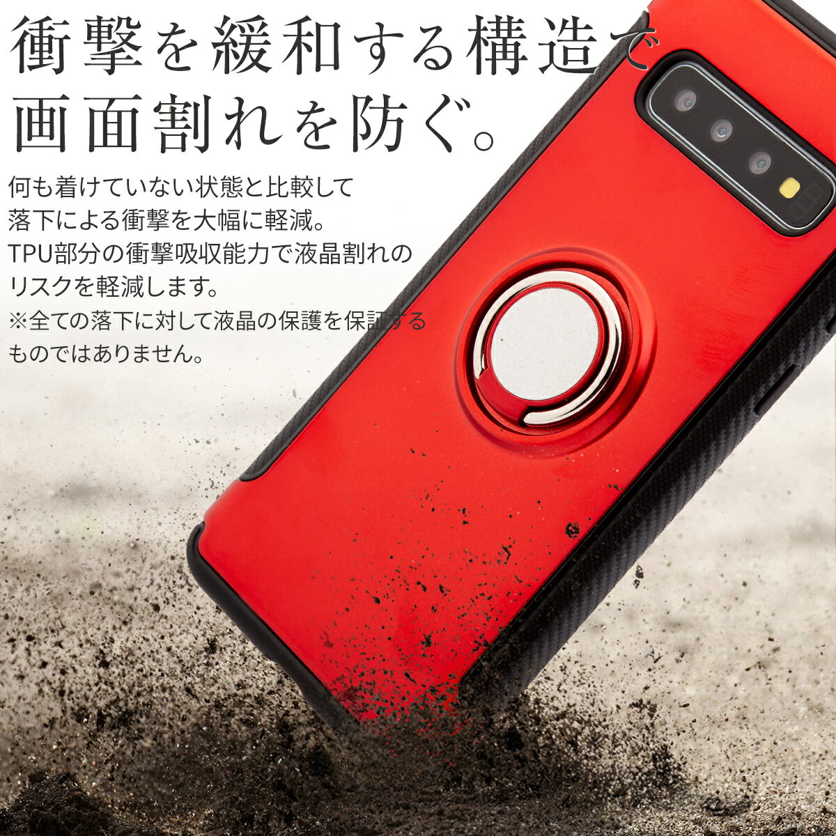 スマホケース Galaxy S10+ リング付き耐衝撃ケース ハードカバー スマホ ケース スマホ カバー スマホリング 落下防止 ブラック シルバー ネイビー ゴールド レッド グレー ピンク 送料無料