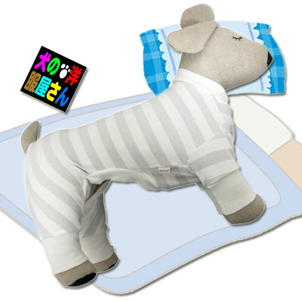 犬服 ボーダー柄パジャマ グレー×ホワイト(小型犬・中型犬用)【犬の服2点購入でメール便送料無料】ドッグウェア ロンパース ジャンプスーツつなぎ チワワ トイプードル ミニチュアダックスフント 柴犬 コーギー パグ フレンチブルドッグ ヨークシャテリア ポメラニアン等