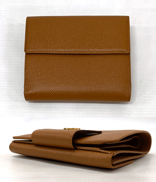 商品情報 [カラー] キャメル×ゴールド [付属品] 箱(イタミ有り) 収納スペース×2 カード入れスペース×6 お札入れスペース×1 コイン入れスペース×1 サイフ/ウォレット/WALLET/二つ折り財布 ※画像の色調は実物と若干異なる場合がございます。