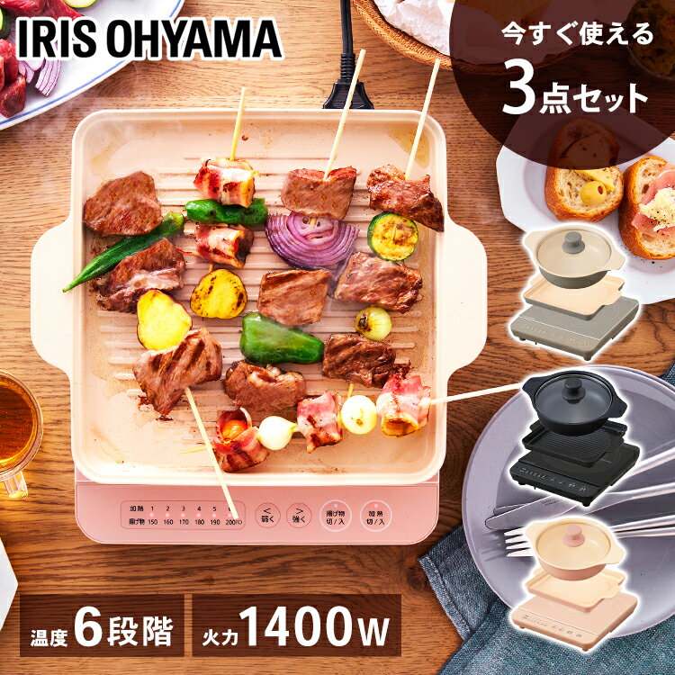 IHクッキングヒーター アイリスオーヤマ 焼き肉・鍋セット1400W IHコンロ 1口 卓上 IH調理器 ホットプレート 焼肉 1口コンロ コンパクト グリル鍋 電磁調理器 IHヒーター 一人暮らし 1人暮らし 新生活 おしゃれ 家電セット IHKP-T3724 IHKP-YP14
