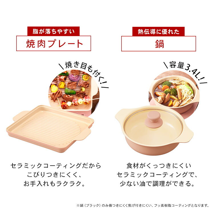【脂が落ちやすい焼肉プレート】セラミックコーティングだからこびりつきにくく、お手入れもラクラク。